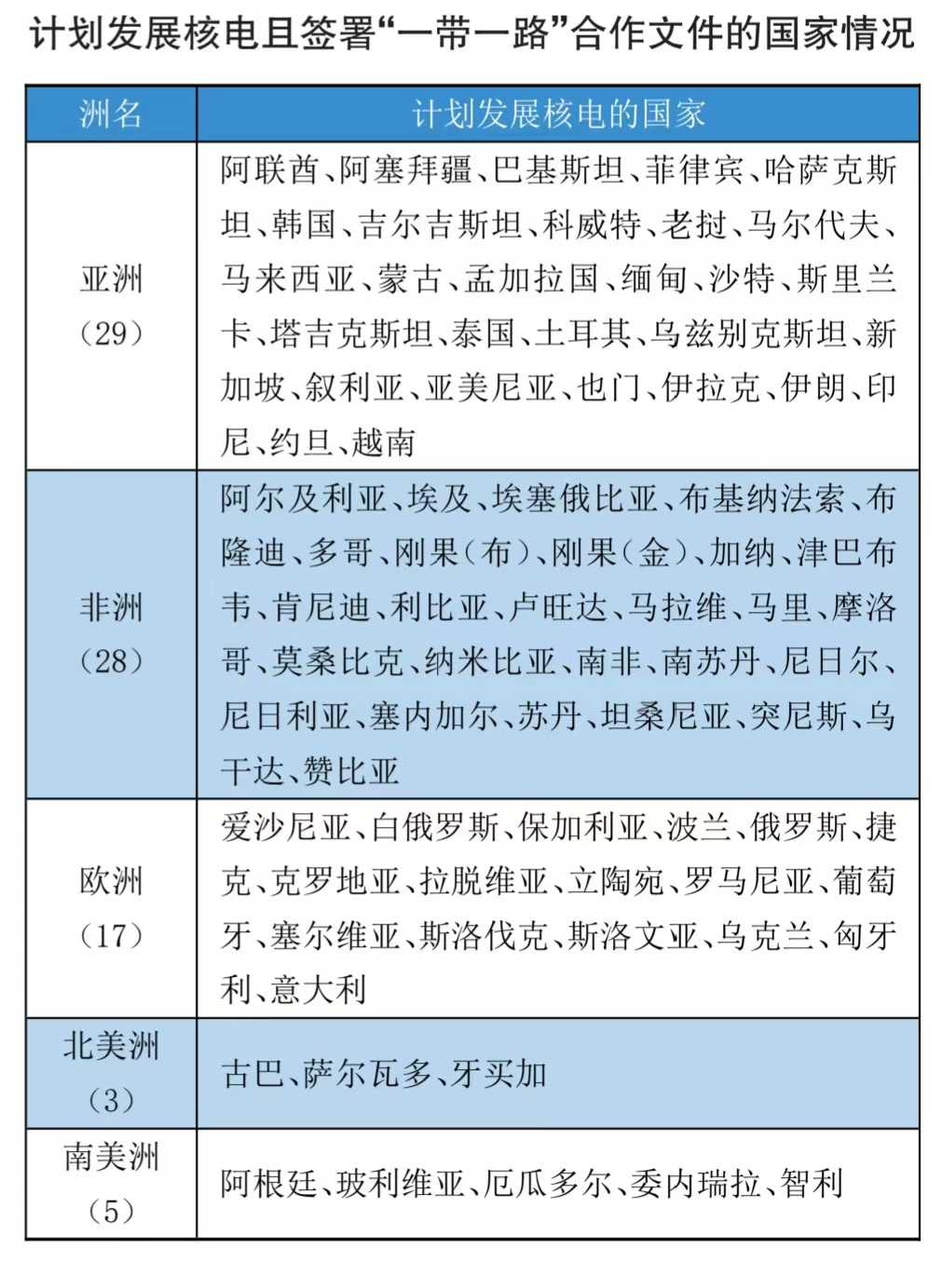 目前,全球有3个国家国内没有在运核电机组但正在建设核电机组,分别为孟加拉国、土耳其和埃及。这3个国家都与我国签署了“一带一路”合作文件。
