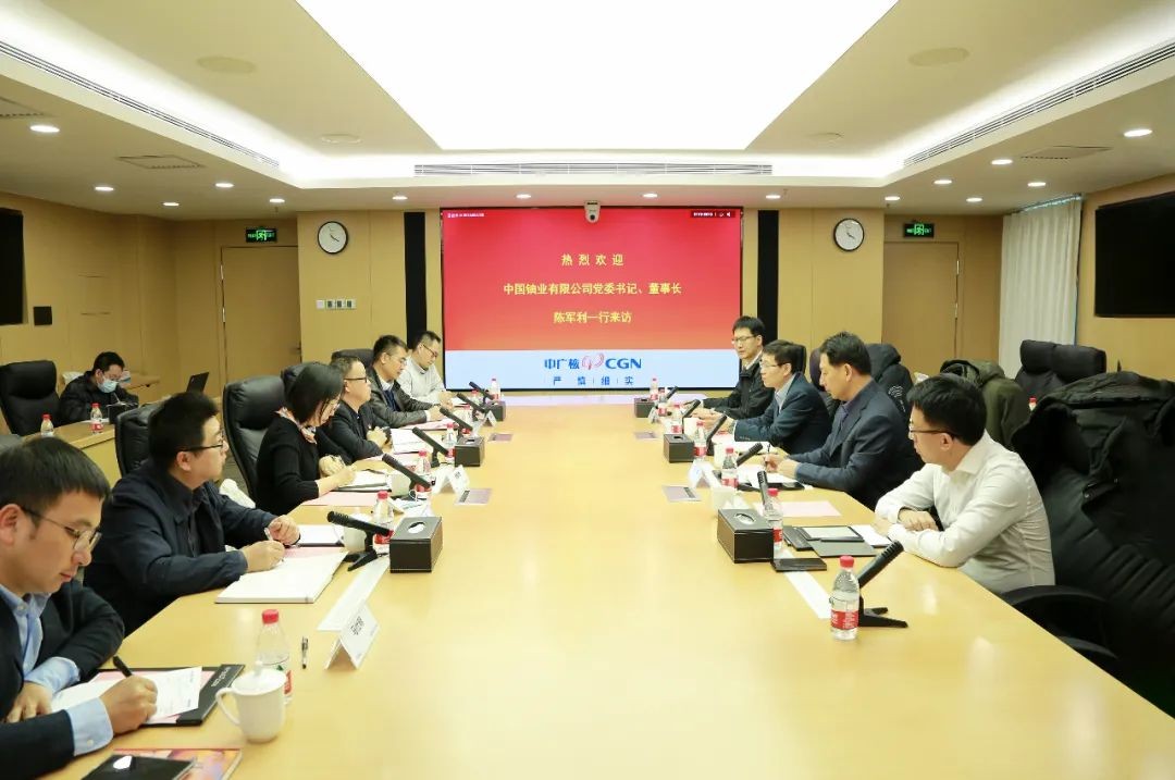 2月21日下午,中广核铀业发展有限公司党委书记、董事长、总经理安军靖会见中国铀业有限公司党委书记、董事长陈军利,双方就铀资源勘探与开发、天然铀贸易采购等方面展开交流讨论。