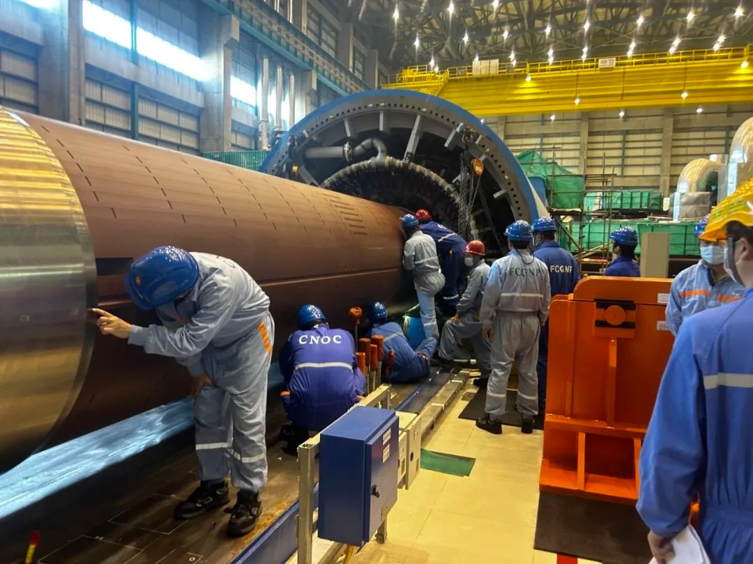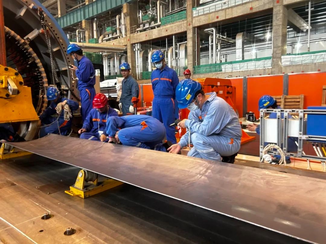 近日,防城港核电站3号机组顺利将发电机转子抽出,标志着F301大修发电机检修工作迈出关键性一步。