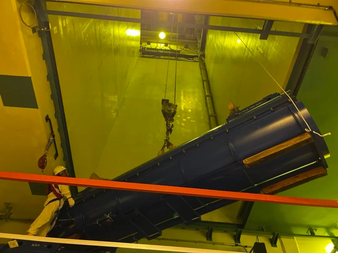 辅助吊车专攻新燃料接收这场战役。它有两套起升机构。主起升机构额定载重10吨,负责将放置在0米的新燃料容器吊运到新燃料接收间内;副起升机构额定载重2吨,负责协助开箱及将新燃料组件吊入升降机或干式贮存间。