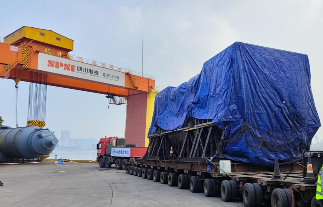设备装载江船后,通过拖轮助航、多次调峰助航等措施,在船舶装载设备吃水更深的情况下,于岷江枯水期安全开航,顺利从宜宾驶入长江发往目的地,保障了发运整体进度。