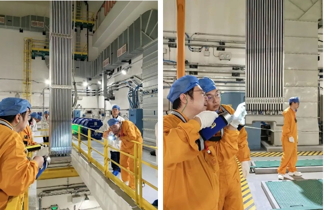 ▲技术支持处在燃料厂房开展燃料组件外观检查