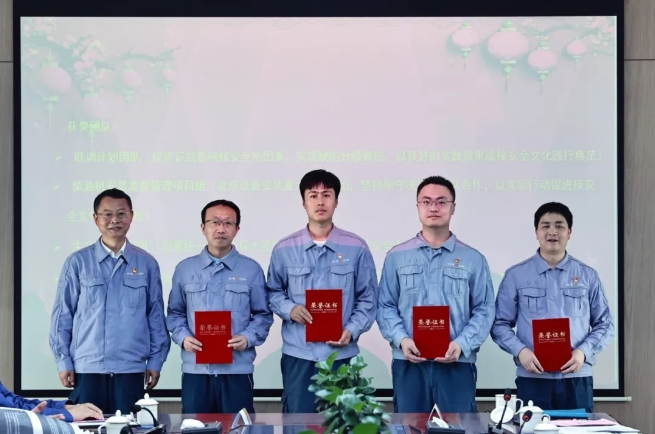 为获得卓越核安全文化践行奖的团队颁奖