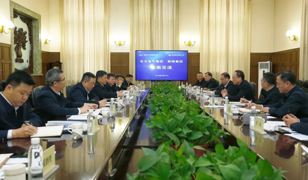 4月20日,东方电气集团党组书记、董事长俞培根与鞍钢集团党委书记、董事长谭成旭在辽宁鞍山举行会谈,并见证双方签署战略合作框架协议,东方电气集团党组成员、副总经理李忠军,鞍钢集团党委常委、副总经理、攀钢董事长徐世帅代表双方签字。
