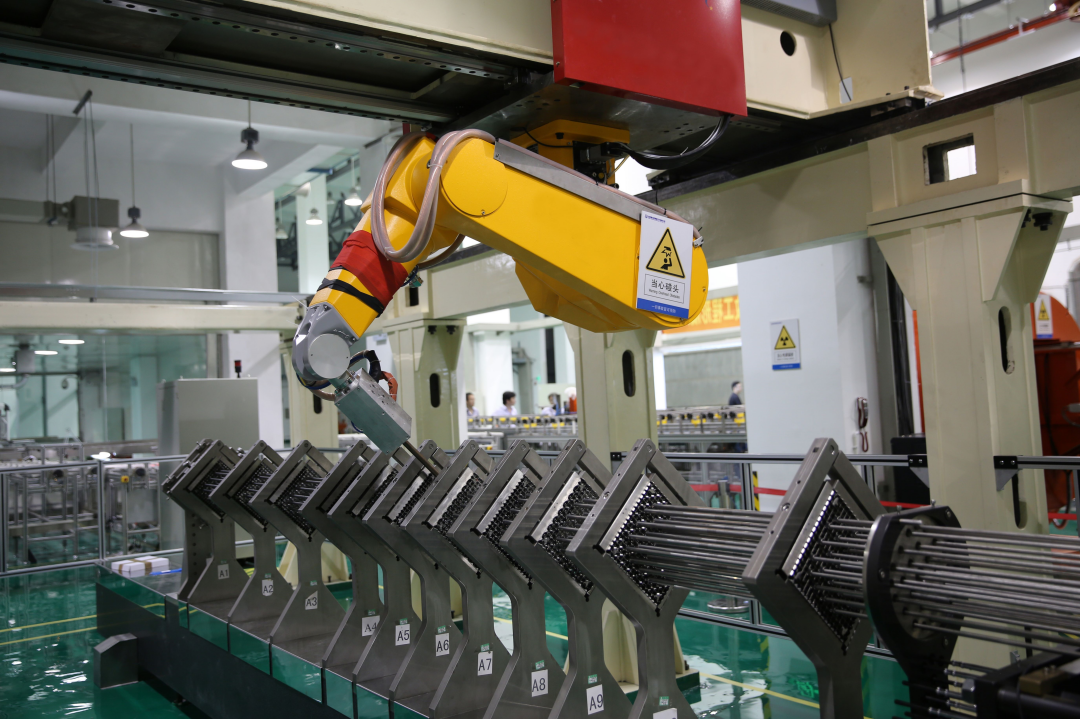 “嘀嘀嘀”,自动化设备在程序控制下高效运转,机械臂按照设计路径有序摆动,显示屏上各项参数清晰明了,这是中核建中核燃料元件生产线的智能生产场景,也是中核建中紧紧围绕“起点是‘新’,关键在‘质’,落脚于‘生产力’”来谋划核燃料元件数智化转型升级的缩影。如今,中核建中正在从制造向工艺研发、交付及服务等各环节加快推动数智化转型,使劳动者、劳动资料、劳动对象及其优化组合实现质变,以生产技术的整体提升驱动产业转型升级。