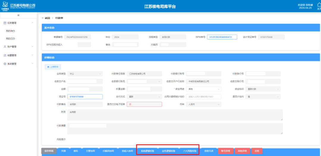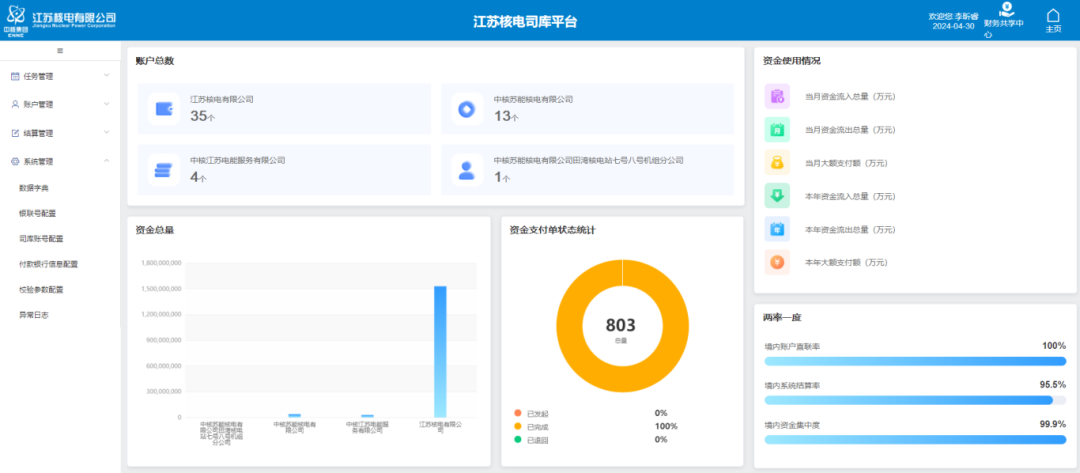 为响应中核集团、中国核电“建设一流司库,助力集团高质量发展”的号召,实现江苏核电“效能型”司库建设目标。江苏核电高度重视,始终秉承高位推动,发布专项工作方案并成立专项工作组。在集团司库管理中心、中国核电的指导下,在信息技术专业团队的支撑下,专项工作组与各业务处室紧密配合,江苏核电司库系统正式上线!