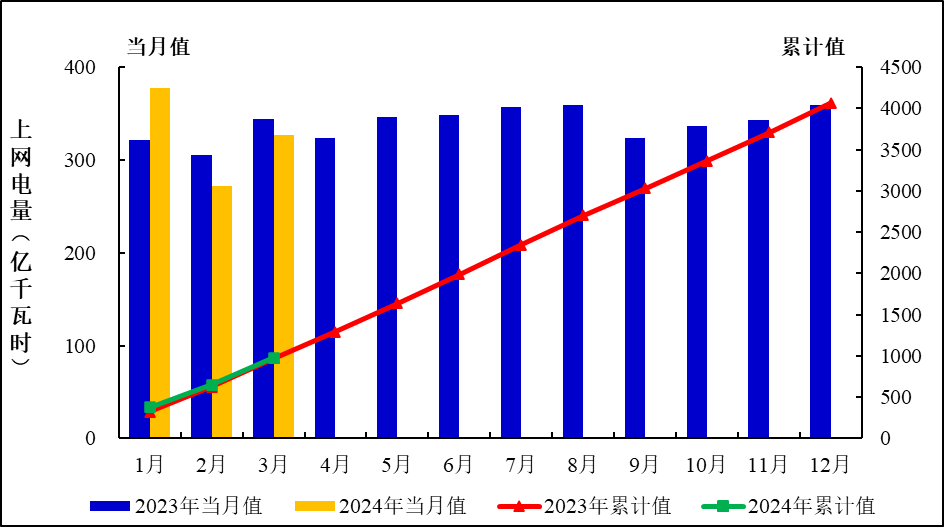 图3:2023年1月至2024年3月全国运行核电机组上网电量趋势