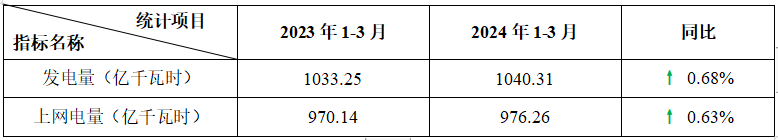 表3:2024年1-3月运行核电机组电力生产情况统计表