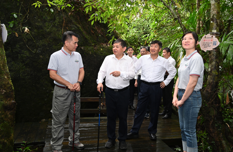海南热带雨林国家公园是我国首批5个国家公园之一,是我国热带生物多样性和遗传资源的宝库。21日上午,黄润秋前往海南热带雨林国家公园五指山片区,调研生物多样性保护情况。他走进雨林深处,查看植被长势,并与生态护林员交流,询问动植物种类、数量、习性及栖息环境等情况。黄润秋指出,要加强生物多样性调查监测,加大生物多样性保护力度,切实提升生态系统多样性、稳定性、持续性,让自然生态系统的原真性和完整性得到更好保持,为子孙后代留下珍贵的自然资产。
