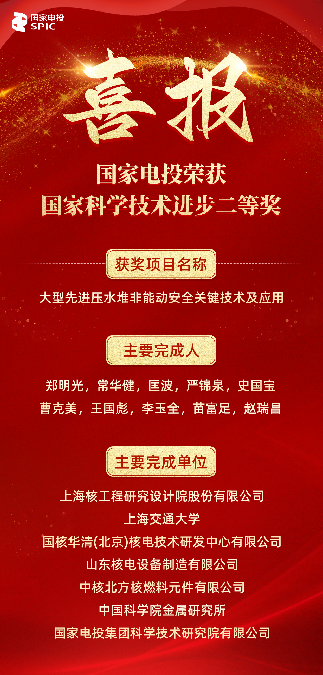 6月24日上午,全国科技大会、国家科学技术奖励大会、两院院士大会在京召开,习近平总书记为国家最高科学技术奖获得者等颁奖并发表重要讲话。自1999年党和国家对科技奖励制度实行重大改革以来,这是首次由党中央、国务院共同授予国家科学技术奖。国家电投上海核工院牵头完成的项目“大型先进压水堆非能动安全关键技术及应用”获国家科学技术进步二等奖。项目第一完成人、压水堆国家科技重大专项技术总师、“国和一号”总设计师、国家电投首席科学家郑明光和项目第四完成人、压水堆国家科技重大专项技术副总师严锦泉作为获奖代表在人民大会堂参加会议。