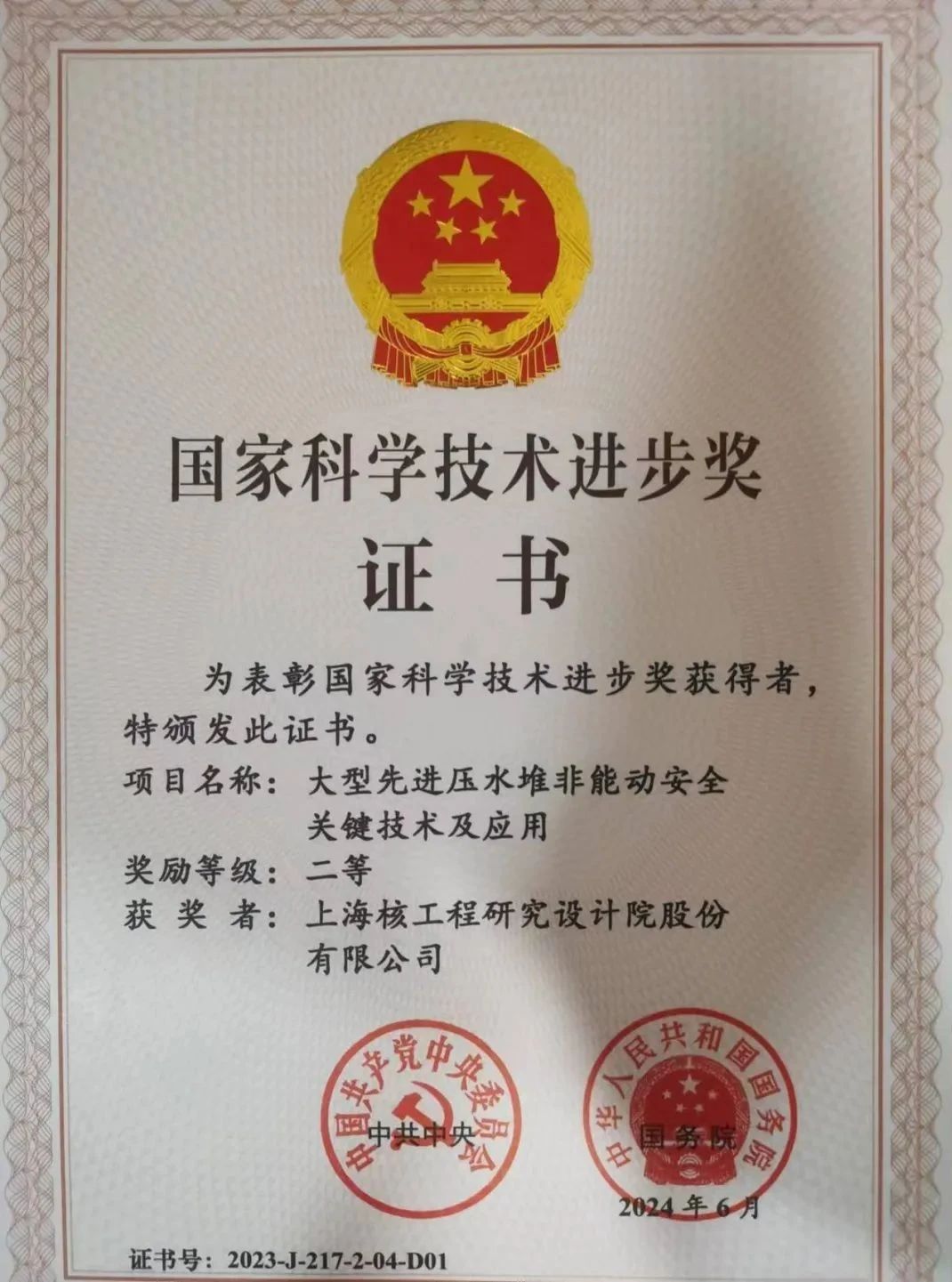本次获奖项目源自压水堆国家科技重大专项,并在此基础上形成了三代核电自主化和高水平科技自立自强的标志性成果——“国和一号”。自2008年“国和一号”研发工作启动以来,国内科研院所、装备制造企业、高等院校等700余家单位、3万余名科研人员参与研发、设备制造及工程建设,成功填补了我国核电产业多项技术和工艺空白。据统计,“国和一号”研发过程中,形成知识产权成果1.4万余项,形成新产品、新材料、新工艺、新装置、新软件等2000余项。截至2023年底,“国和一号”已实现整机100%国产化能力,有力支撑了核电“走出去”战略。