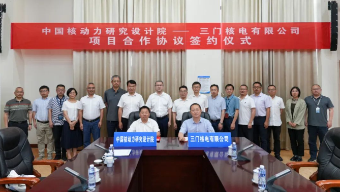6月22日,三门核电党委书记、董事长陈国才一行来中国核动力研究设计院交流访问。核动力院院长、院党委副书记姚刚,院党委副书记唐传宝,院副总工程师李朋洲出席交流活动。三门核电党委委员、总工程师张冰伟,副总监栗岭茂,三门核电相关部门负责人陪同到访。会上,核动力院副总工程师李朋洲、三门核电副总监栗岭茂签订了项目合作协议。
