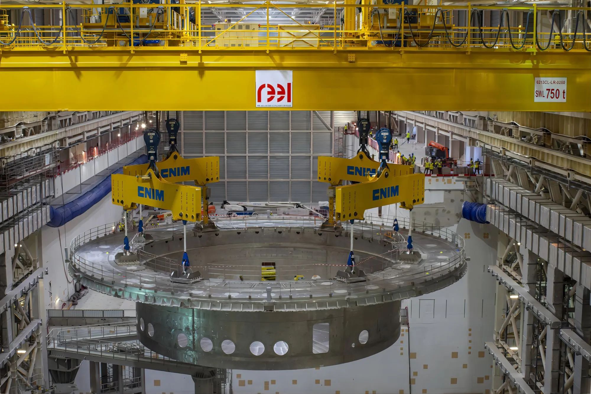 2020年4月下旬,经过月余的培训,中方团队人员正式进场工作。第一个任务就给了中方团队一个“下马威”——需要将重达1250吨的杜瓦底座安装到托卡马克大厅内,这是ITER项目尺寸最大、单体重量最大的部件。