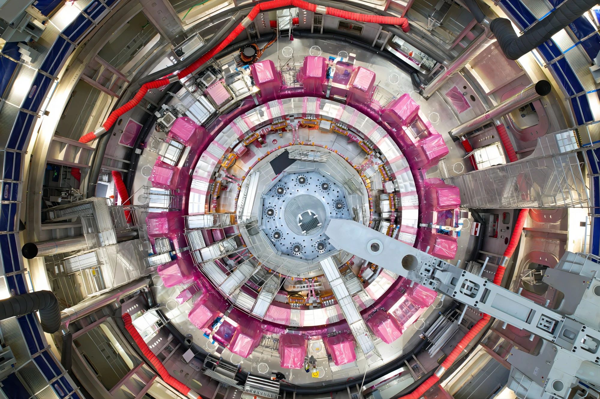 2020年5月杜瓦底座吊装完成,拉开了ITER主设备安装的序幕。一个个工程节点稳步推进,捷报频传:2021年10月底部校正场线圈BCC 5号吊装就位,标志着托卡马克主机安装第一阶段任务完成,实现Pit Ready(具备吊装真空容器的条件)。2023年11月托卡马克装置下部冷屏、最后一个下部主要磁体部件——极向场超导线圈均已成功落位,TAC-1合同在ITER项目已经累计完成了34个工作包。2023年底实现现场安全施工1340天,成为ITER现场安全管理的标杆。