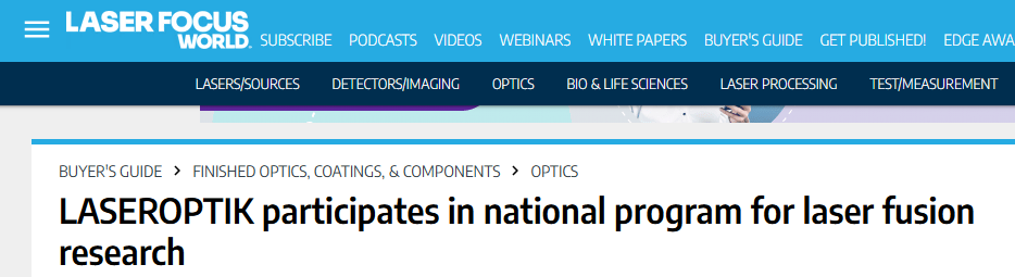 日前,LAZER FOCUS WORLD发布了一篇名为《LASEROPTIK participates in national program for laser fusion research》的新闻稿,即LASEROPTIK 参与国家(德国)激光聚变研究计划-FUSION 2040。
