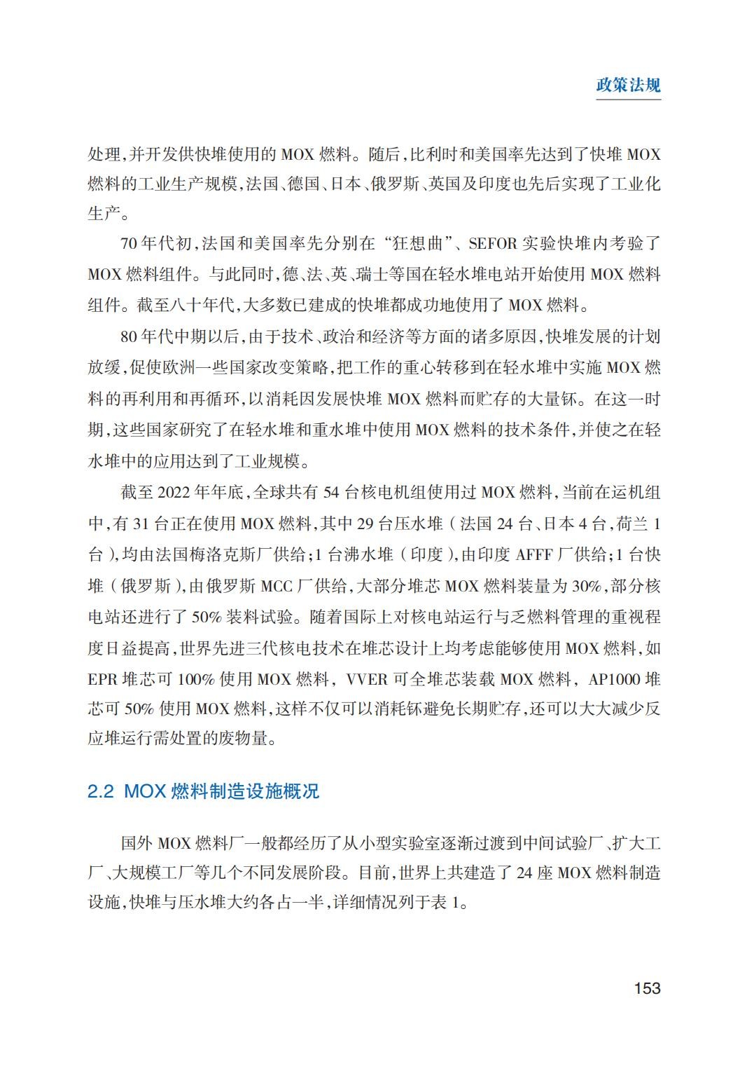 全球 MOX 燃料发展现状及对我国的启示与建议