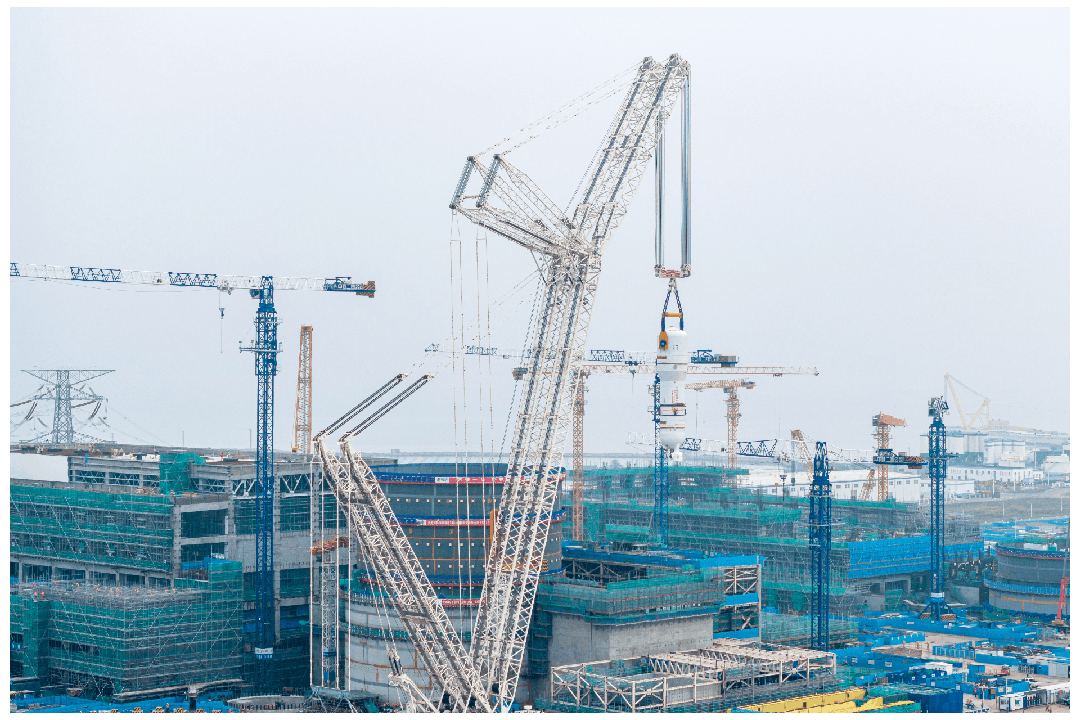 蒸汽发生器是核电机组一、二回路的枢纽和压力边界,将堆芯产生的热量转换为蒸汽,通过主蒸汽管道输送到常规岛,推动汽轮机带动发电机发电。每台机组包含两台蒸汽发生器,是核岛反应堆主回路中单体最重、体积最大的主设备。本次吊装自6时47分开始,经翻转竖立、起钩、悬停、提升、旋转、行走、下落、调整等动作后,于12时26分吊装完成,历时5小时39分钟,整个过程安全、有序、可控。