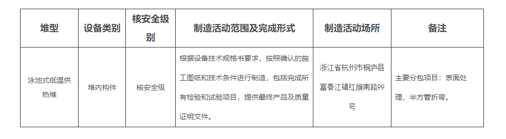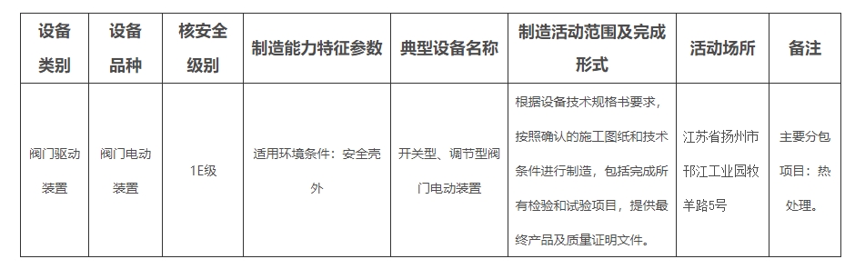 民用核安全设备制造许可活动范围表