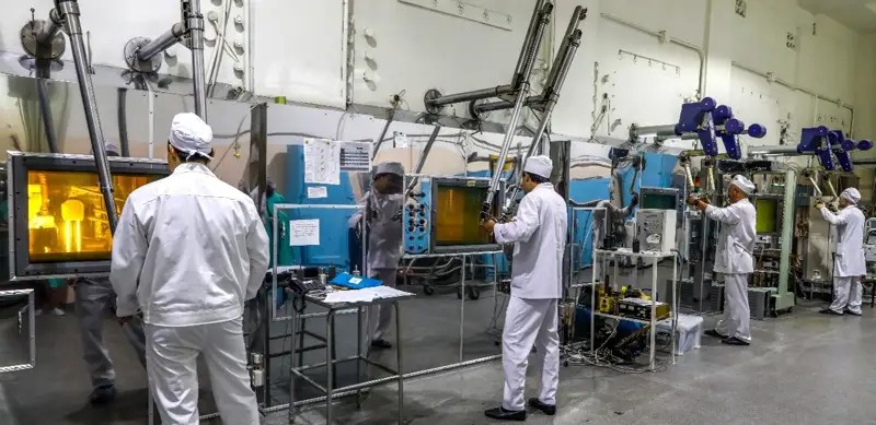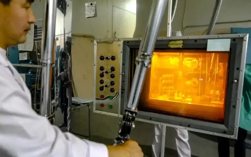 反应堆中的产物由使用“热相机”的特殊设备捕获和照射。所有工作都由专业人员操作机械手完成。
