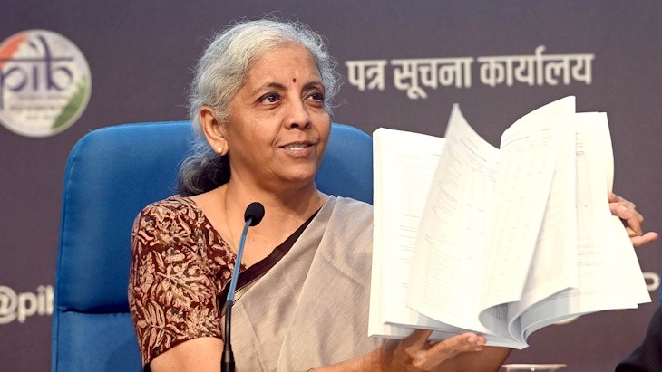 财政和企业事务部长 Nirmala Sitharaman 于 7 月 23 日出席预算发布后新闻发布会 (图片来源:新闻信息局)