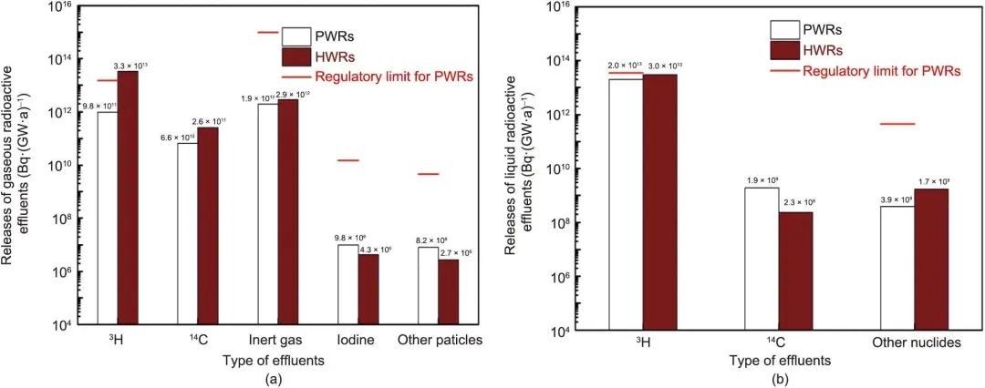 一般来说,根据法国核电站在正常运行期间的实际放射性排放量估计的剂量比前面提到的天然放射性剂量水平低三个数量级以上。通过监测中国6座压水堆核电站(PWR)和一座重水堆核电站(HWR)运行期间的气体和液体流出物,发现其排放量远低于监管限值和天然辐射照射水平。多年来,中国和法国的液体和气体放射性排放量都大幅减少。