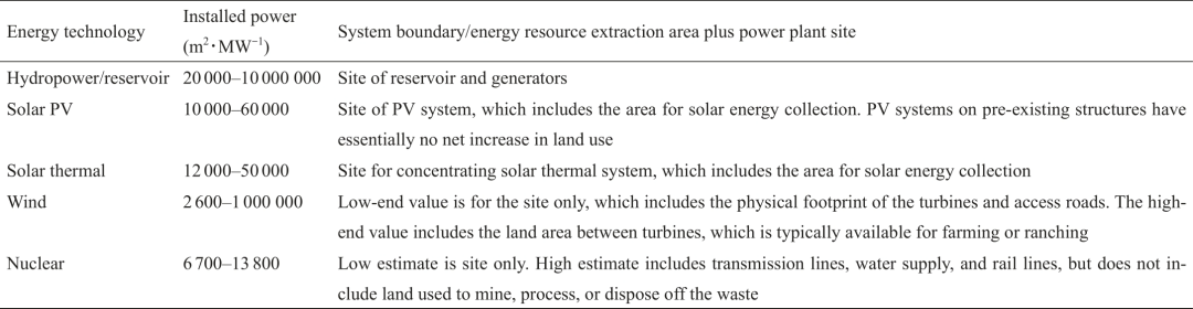 表2 不同能源系统单位装机容量的土地利用强度[‒]