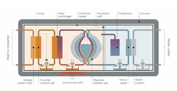 那么这一切是怎么发生的呢……?基础和起源是熔盐反应堆实验 (MSRE),这是一座钍增殖反应堆,于 20 世纪 60 年代在美国橡树岭国家实验室运行了五年。随着互联网在 2000 年左右的普及,这项技术背后的知识产权得以公开,并被世界各地的许多大学团体采用。这就是人们对熔盐反应堆兴趣重新燃起的开始,并催生了一个目前正在兴起的行业。