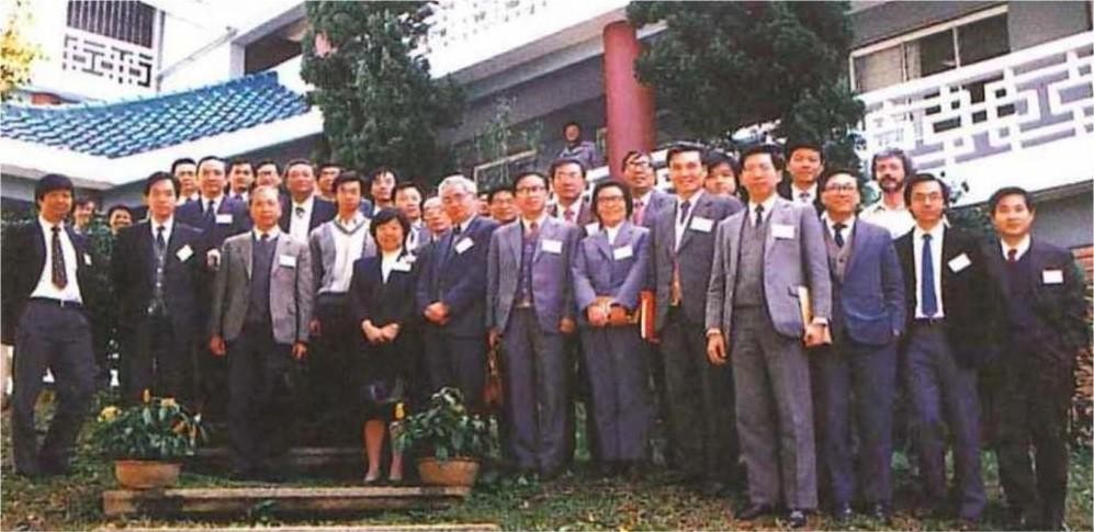 ▲曹太(前排左四)组织中港台三地核电专家举办核技术安全会议,其丈夫曹宏威(左一)也有出席。 受访者提供