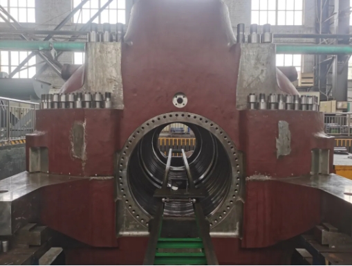 低压缸需要通过高性能钢板和锻件拼接堆焊出庞大身躯,再通过数控机床细心打磨,最终要与低压转子配合形成恰到好处的通流间隙,才能保证低压转子旋转又快又稳。