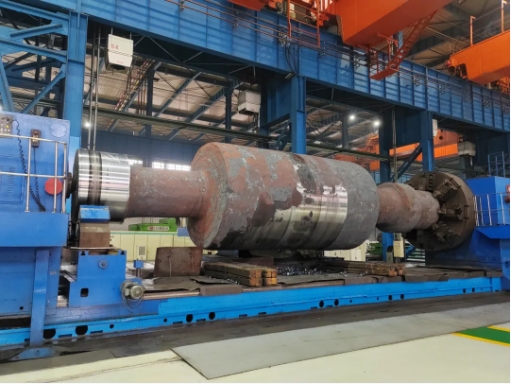 ▲低压转子锻件首次粗加工现场