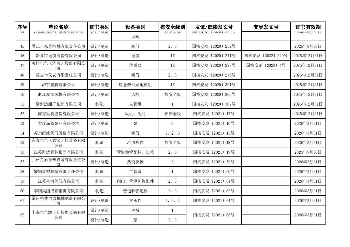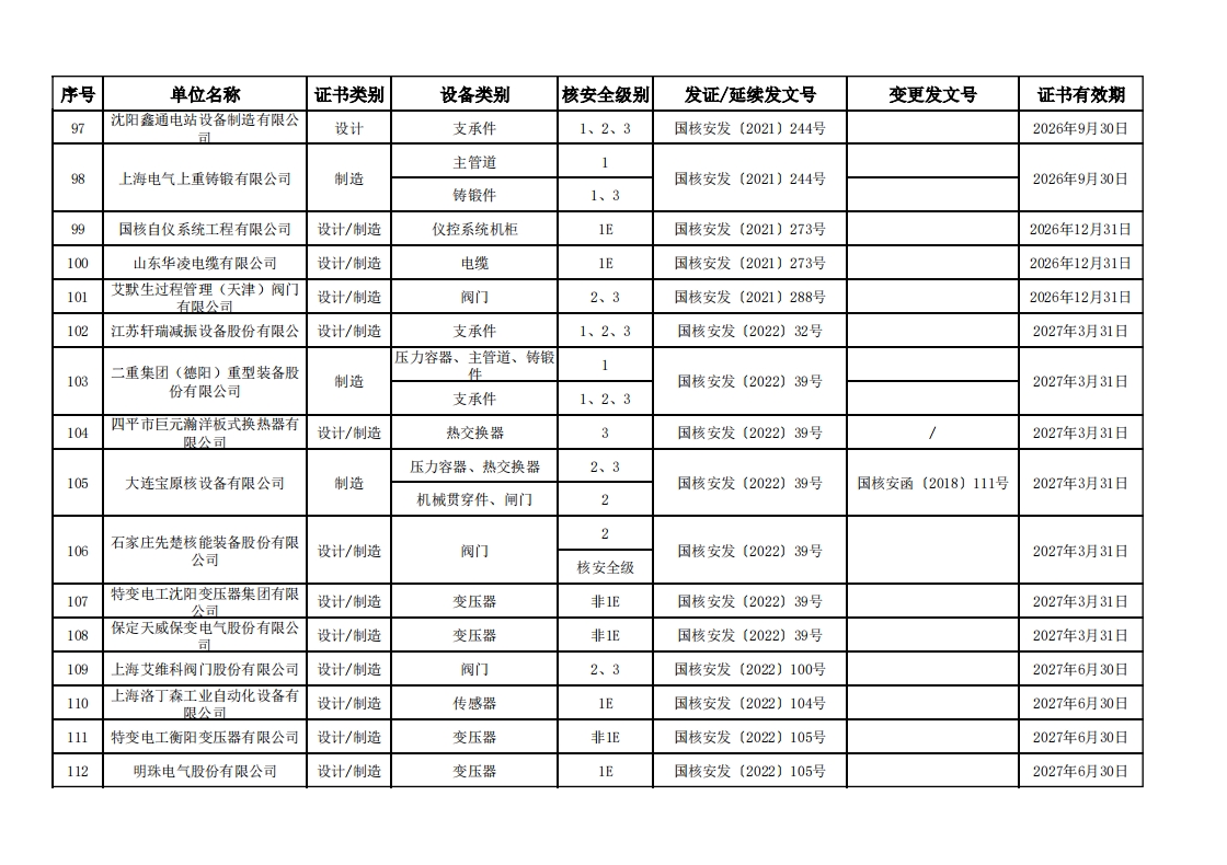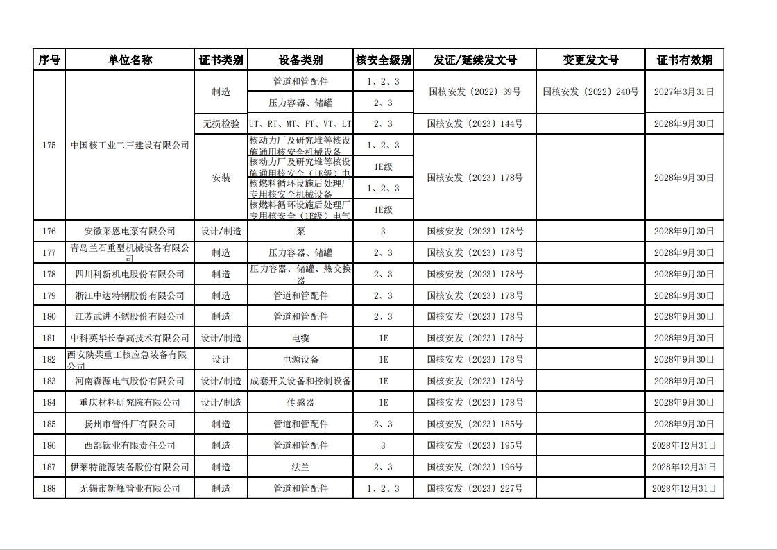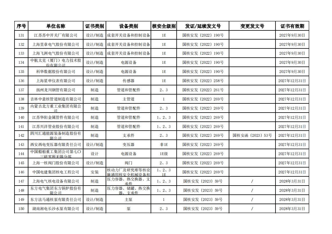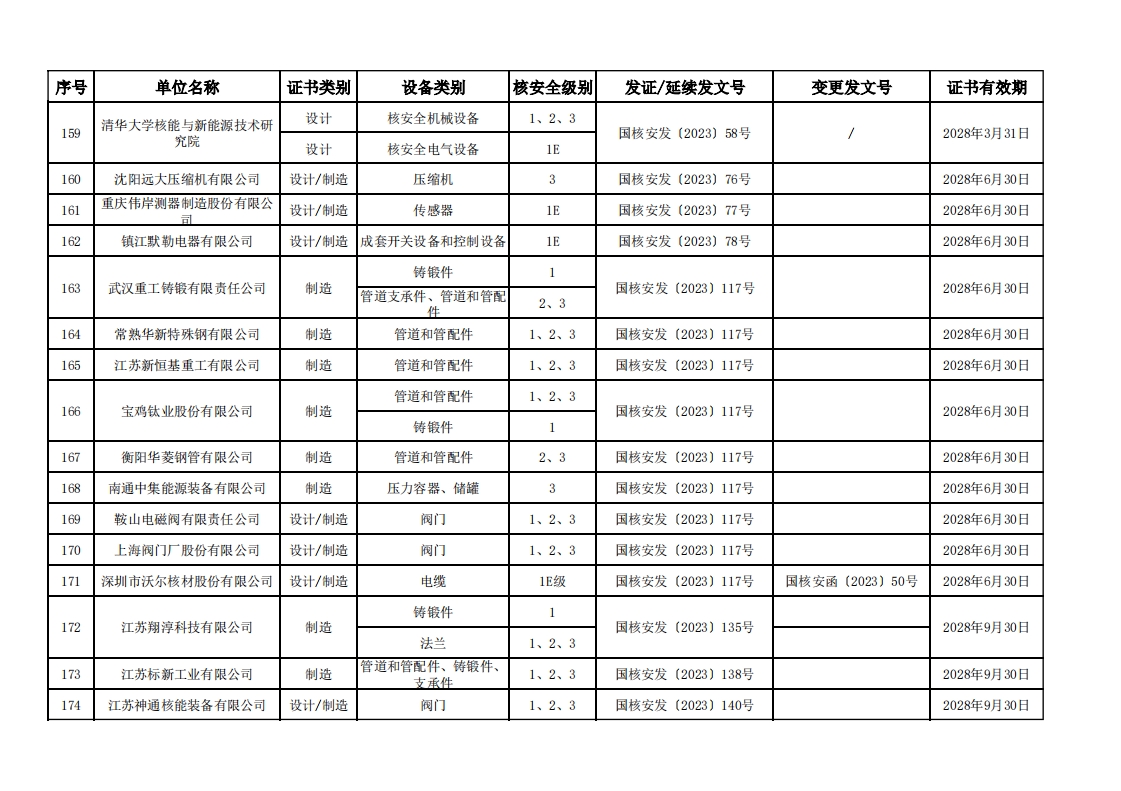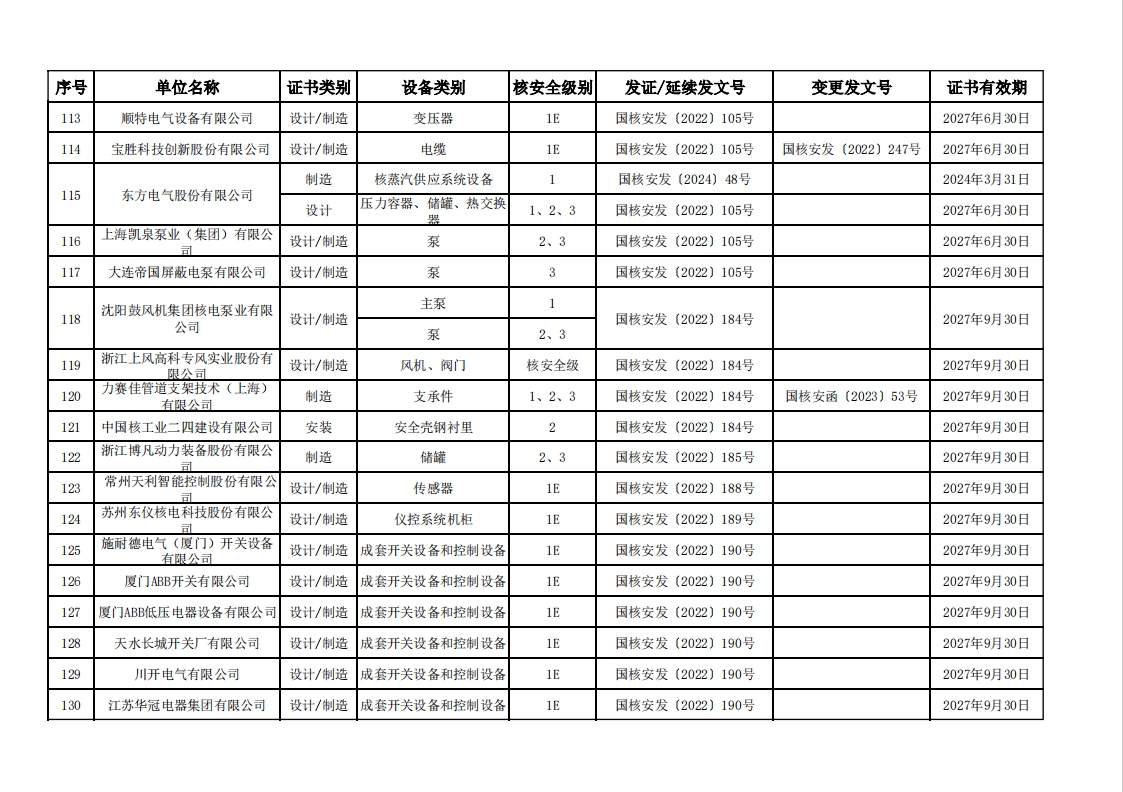 2024年8月1日,国家核安全局发布民用核安全设备持证单位信息统计表,截至2024年6月30日共有226家登记在册。