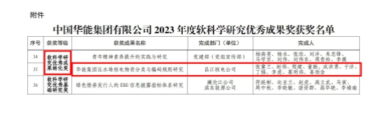 关于表彰中国华能集团有限公司 2023 年度 软科学研究优秀成果的通报