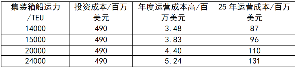 表1 亚欧航线上核动力集装箱船的投资支出和运营支出
