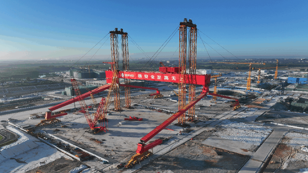 8月5日,世界核电建设领域首个大型龙门吊——国家电投广东廉江核电1600吨龙门吊组装提升工作顺利完成,龙门吊安装工作进入合拢焊接新阶段。