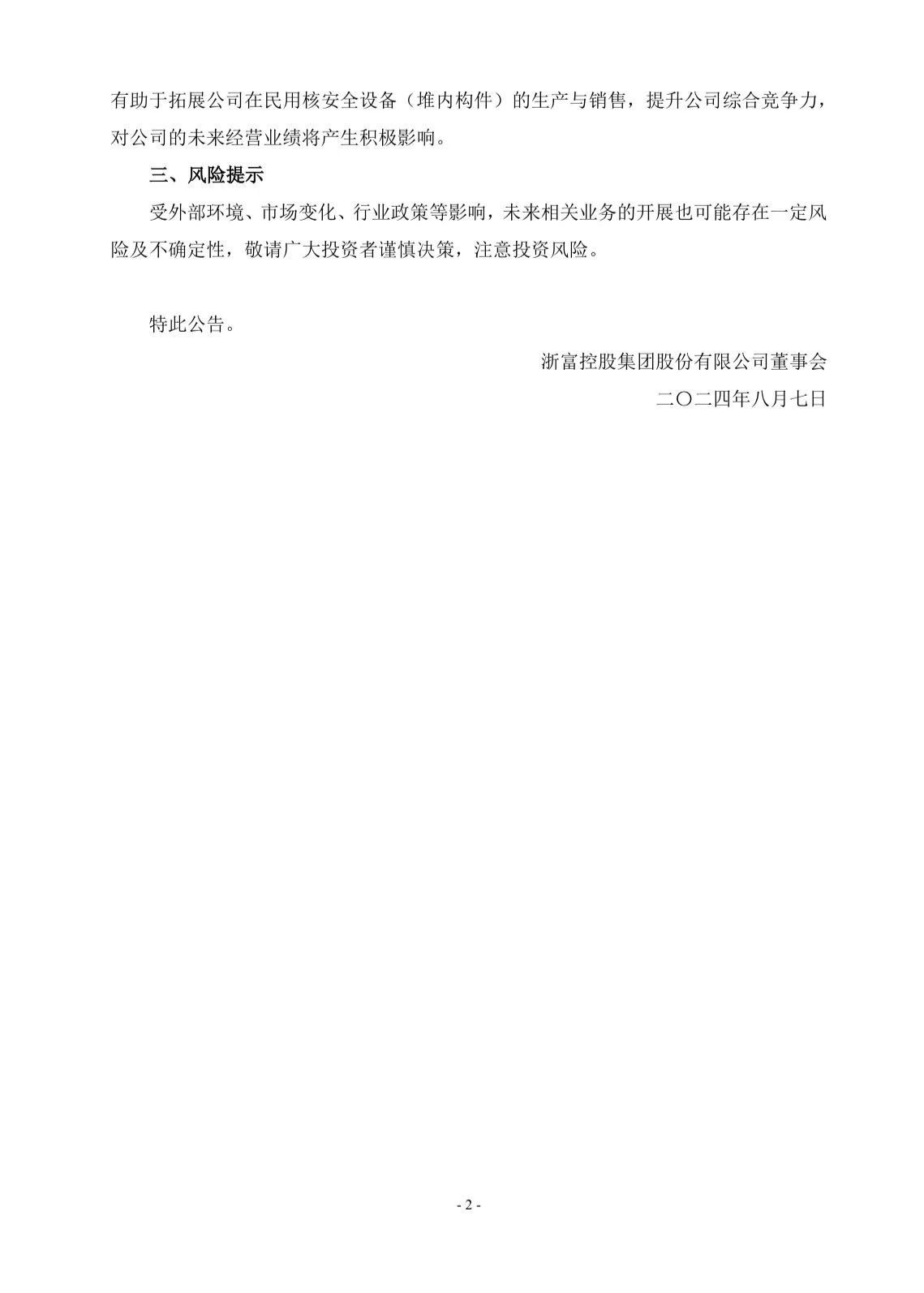 8月7日,浙富控股集团股份有限公司发布公告称,公司全资子公司杭州浙富核电设备有限公司(以下简称“浙富核电”)于近日收到国家核安全局《关于颁发杭州浙富核电设备有限公司民用核安全设备制造许可证的通知》,国家核安全局经过审查,决定向浙富核电颁发《民用核安全设备制造许可证》。