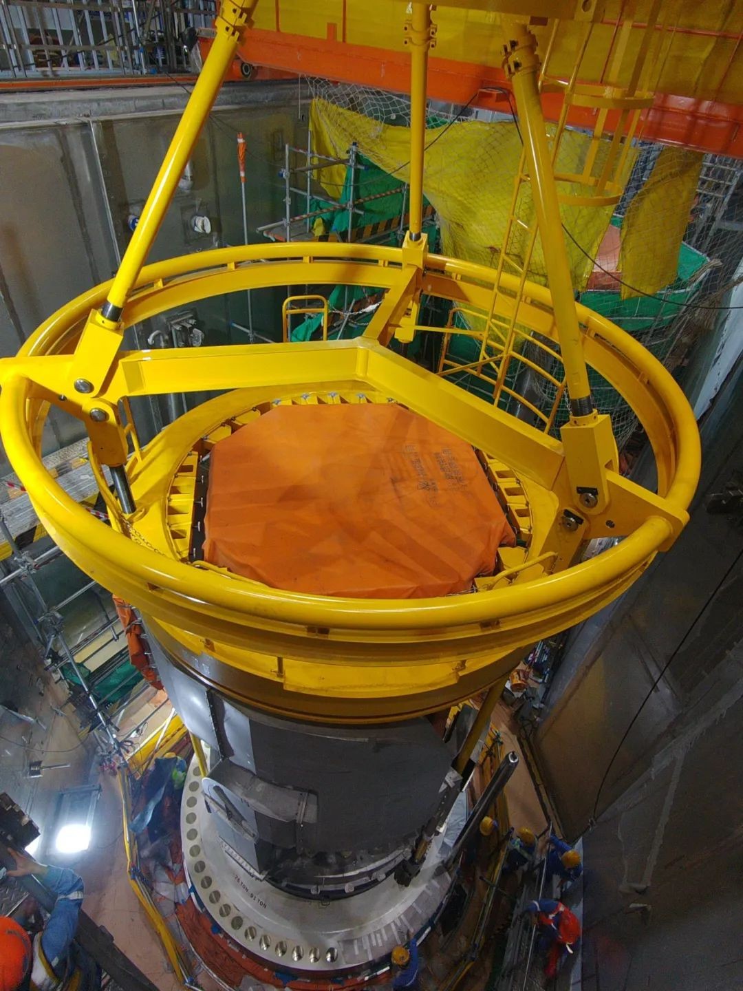 中广核“华龙一号”反应堆压力容器顶盖体是反应堆冷却剂系统压力边界的重要组成部分,也是核岛堆芯放射性安全防护的第二道重要屏障,其重要性不言而喻。在项目部的精心组织下,施工团队严格遵循施工方案,从多个角度对吊装过程中可能出现的突发情况进行沙盘推演,准确识别现场可能存在的各种风险因素,并据此制定切实可行的应对措施。这些准备工作,极大地提高了施工效率,确保反应堆压力容器顶盖吊装就位的过程质量可控、安全可靠。