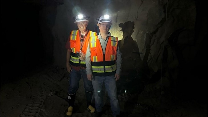 加菲尔德县专员 Jerry Taylor 和 IsoEnergy 首席运营官 Marty Tunney 在 Tony M 地下工作(图片:CNW Group/IsoEnergy Ltd)