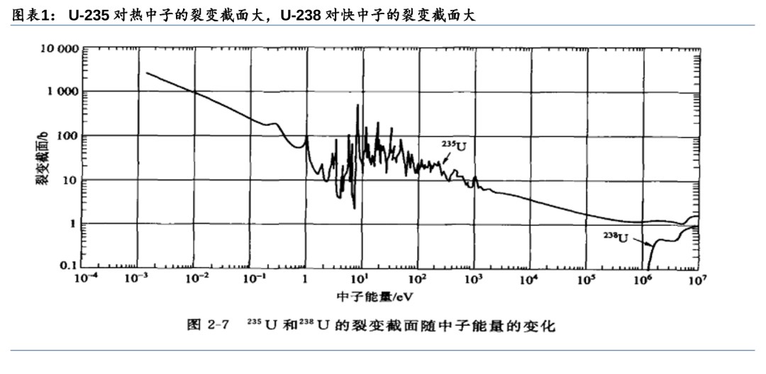 U-235对热中子裂变截面大,需要慢化剂慢化中子提高反应概率。按照中子能量的不同,可将中子分为三类,快中子(E>0.1MeV)、中能中子(1eV<
