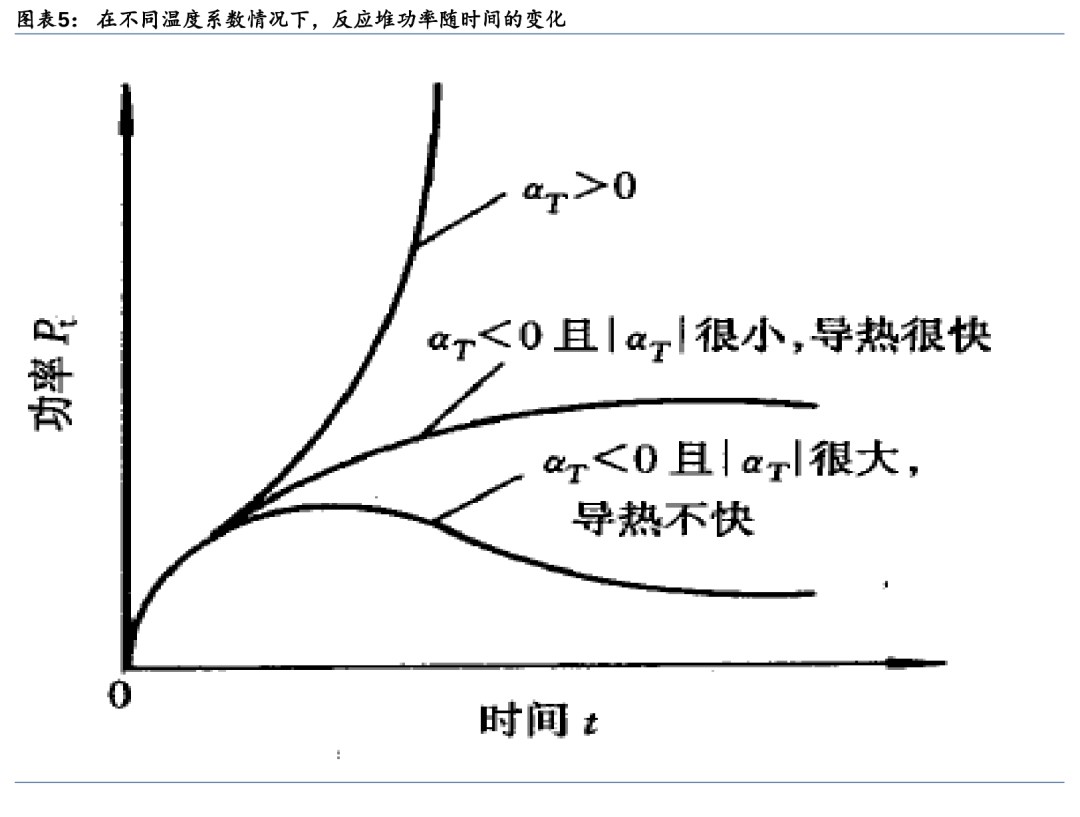 2) 若温度系数为负,温度的升高将导致有效增殖因数的减小,反应性减小,反应堆的功率也随之减小,反应堆的温度逐渐回到初始值。同理,当反应堆的温度下降时,将导致有效增殖因数的增大,反应堆的功率也随之增加,反应堆的温度也逐渐地回到初始值。因此,负反应性温度系数的负反馈效应使得反应堆具有内在的稳定性。