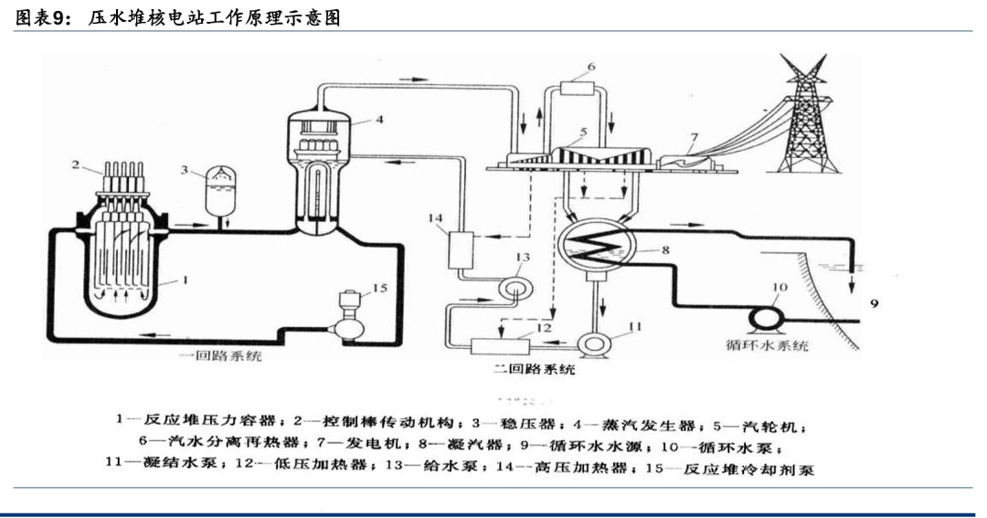 压水堆(PWR):高压下轻水维持液态相,多采用双回路系统