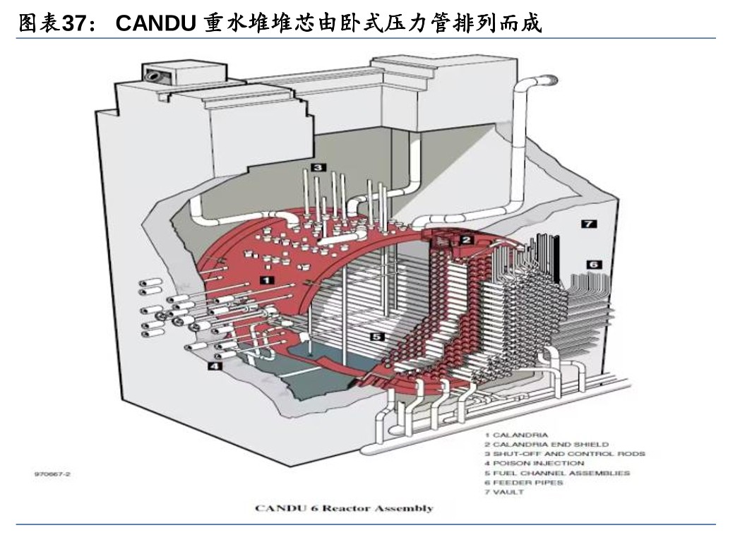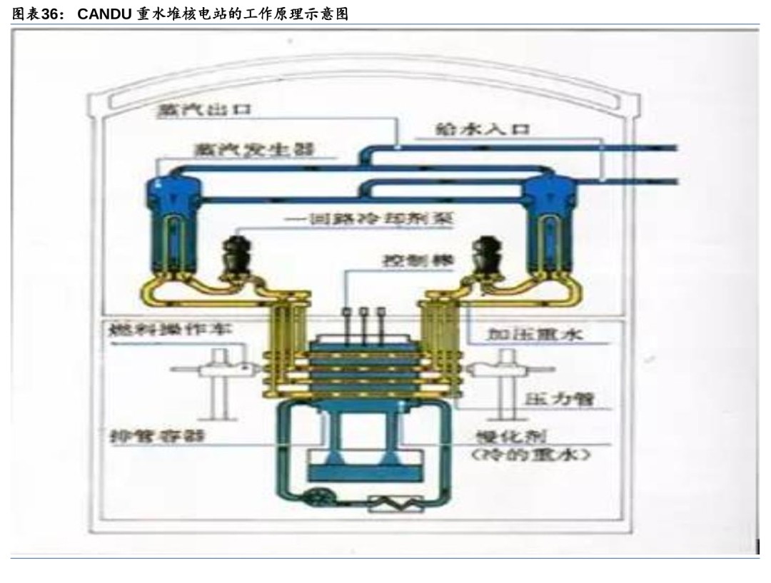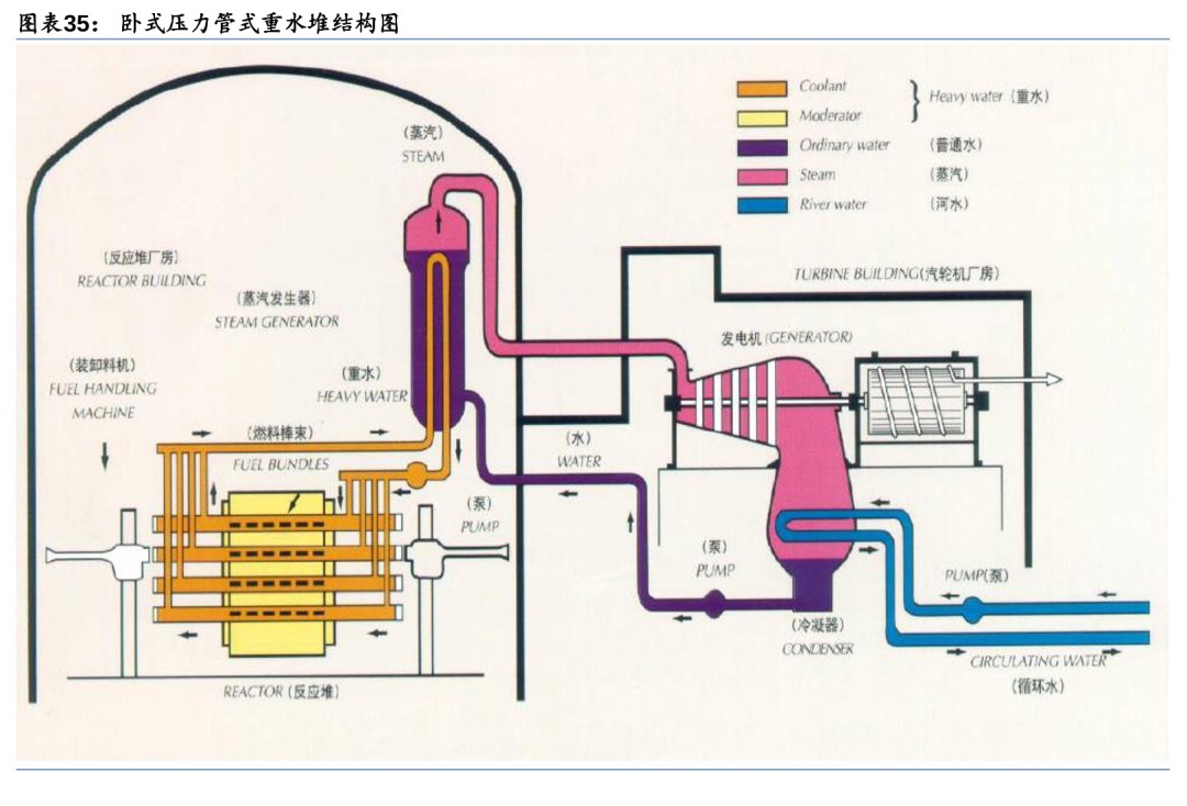 重水堆(PHWR):重水同时作为慢化剂和冷却剂,可采用天然铀作为燃料