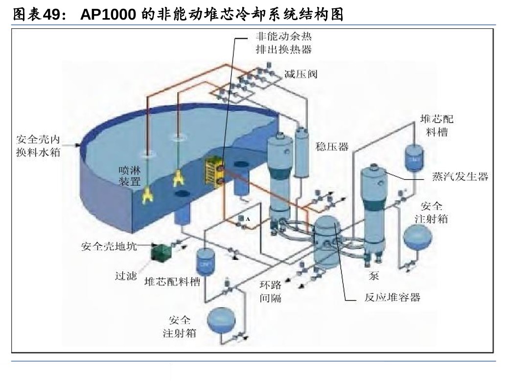 非能动先进压水堆(AP1000):简化一回路管道,增加非能动安全系统
