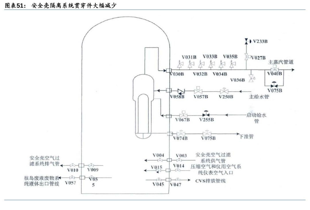 4) 安全壳隔离系统:为贯穿安全壳的流体系统提供隔离手段,使事故后可能释放到安全壳中的任何放射性物质都包封在安全壳内。
