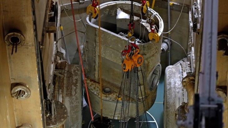 面对高辐射剂量率的挑战,工人们使用金刚石线锯切割并成功吊起反应堆容器的下部,将其安全放入重达32,000磅(约14.5吨)的保护桶中,准备运往场外进行专业处置。这一壮举不仅展示了人类在处理核废料方面的技术进步,也体现了对环境保护的高度责任感。
