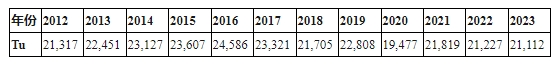 哈萨克斯坦是世界铀重要来源国,自2009年起成为世界最大铀生产国,年产量从 2001年 2114吨增至2016年的24689吨,之后由于铀价低迷产量略有下降。2019 年的产量为 22808 吨,同比增长 5%,2020年由于疫情原因产量降至19477吨。2023年产量为21112吨,哈国家原子能公司KAP表示,2024年预计产量为21000-22500吨。KAP控制哈国所有铀勘探和开采以及其他活动,包括核材料进出口,控股股东为哈主权财富基金,其中15%股份在伦交所和阿斯塔纳交易所上市。