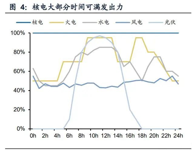 之所以重启并加速核电核准,主要在于以下几方面: 其一,核能发电高效稳定,对比水电、风电、光伏,核电出力稳定,核电不受外界天 气、季节、自然资源等其他环境因素的影响,除检修时间外,全天出力可维持100%, 同时核电位于沿海经济发达省市,电力需求强增速快,更保障了核电的充分消纳。 根据中电联,过去10年内,全国核电平均利用小时数均稳定在7000小时以上,近几 年维持在7600小时以上,远高于其他电源。核电清洁、稳定、高效的特征,可作为 基荷电源保障电力系统稳定安全。