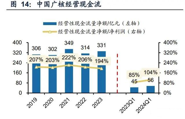 中国广核年均经营现金流净额超300亿元,净现比约2倍,2023年末资产负债率分别 为60%,自身报表仍有融资空间,叠加可转债募资,后续资金相对充裕。由于惠州、 苍南共6台机组由集团建设、符合条件后注入,资产注入期间资金压力较大。