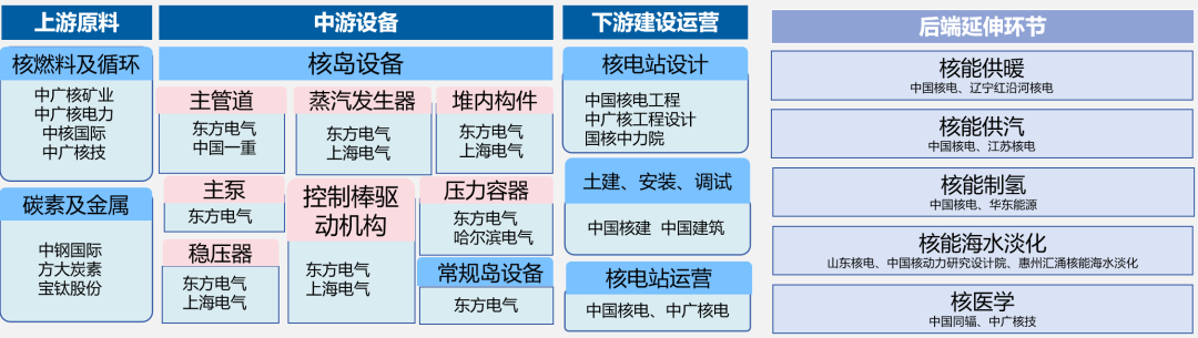 由于行业原因,核电产业链长期以来内部化,未来在核电安全水平不断提升到情况下,与地方经济的也要在中游设备、下游建设运营及后端延伸环节方面不断融合。