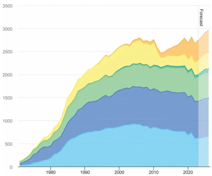 根据他们的预测,尽管由于2023年燃煤发电量强劲增长(尤其是在中国和印度),全球发电产生的二氧化碳排放量在2023年将增长1%,但预计到2024年将下降2%以上。