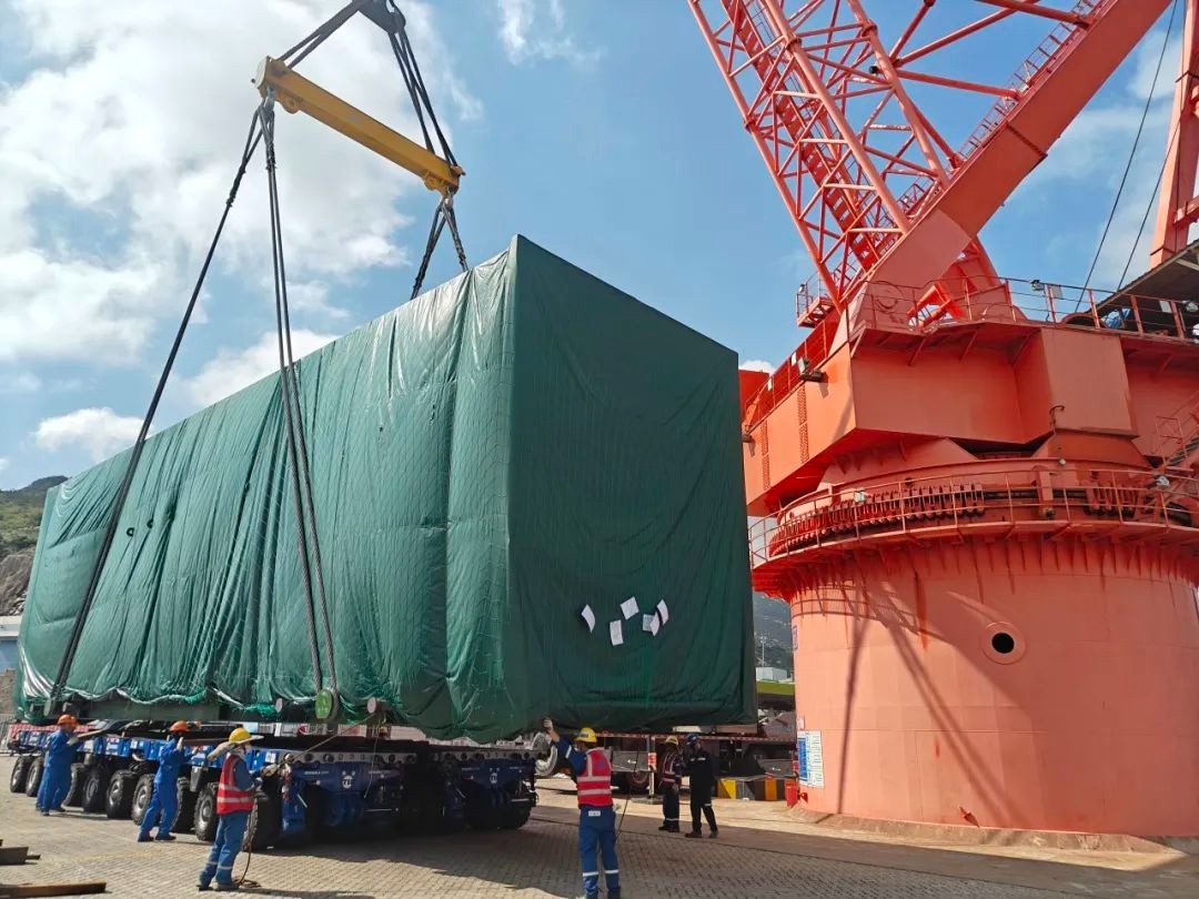 8号机组凝汽器壳体模块共计6台,本次到货其中2台,单台设备长19.84米、宽5.80米、高6.30米,重240吨,自8月24日从上海临港码头装船发运,历时4天安全抵达田湾核电自备码头。为保障主设备顺利进场,项目设备部党员、干部率先垂范、冲锋在前,提前策划、精心部署,从作业方案审查、运输路勘整改、设备装船发运、码头卸船吊装、场内短倒运输,每个环节都严格把控,确保各作业环节安全可控,在各参建单位的通力协作和高效配合下,顺利完成了主设备一次引入。